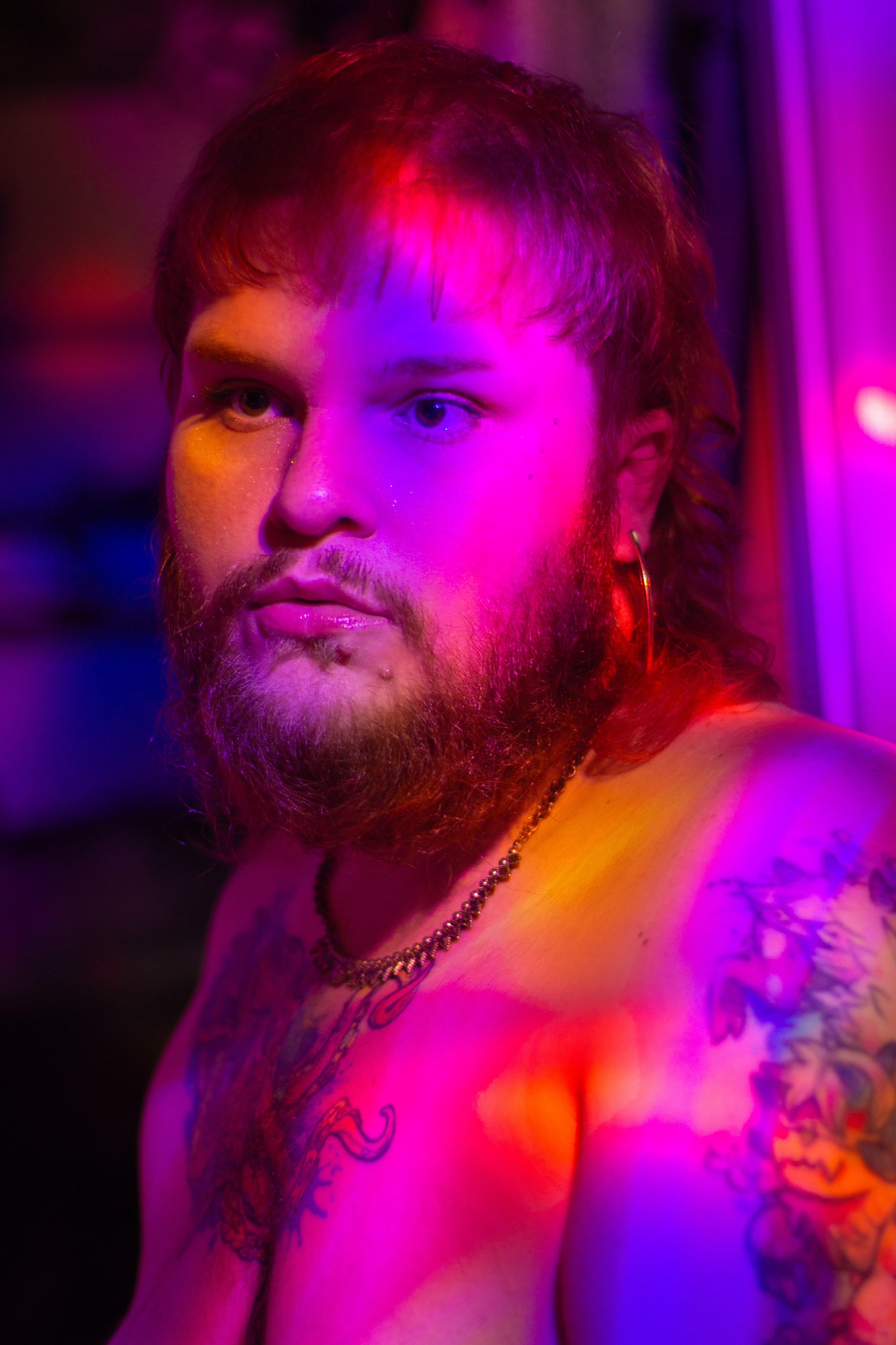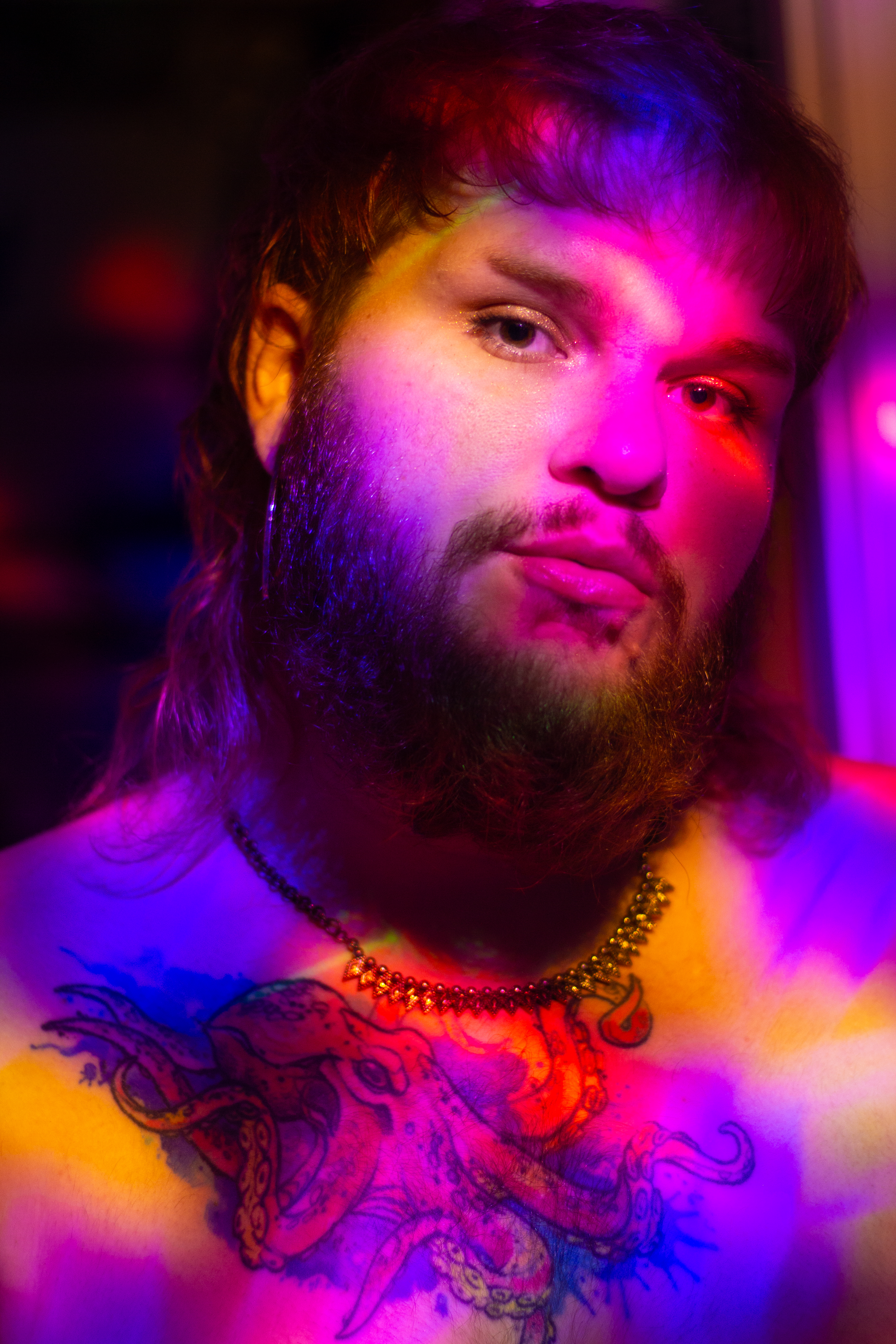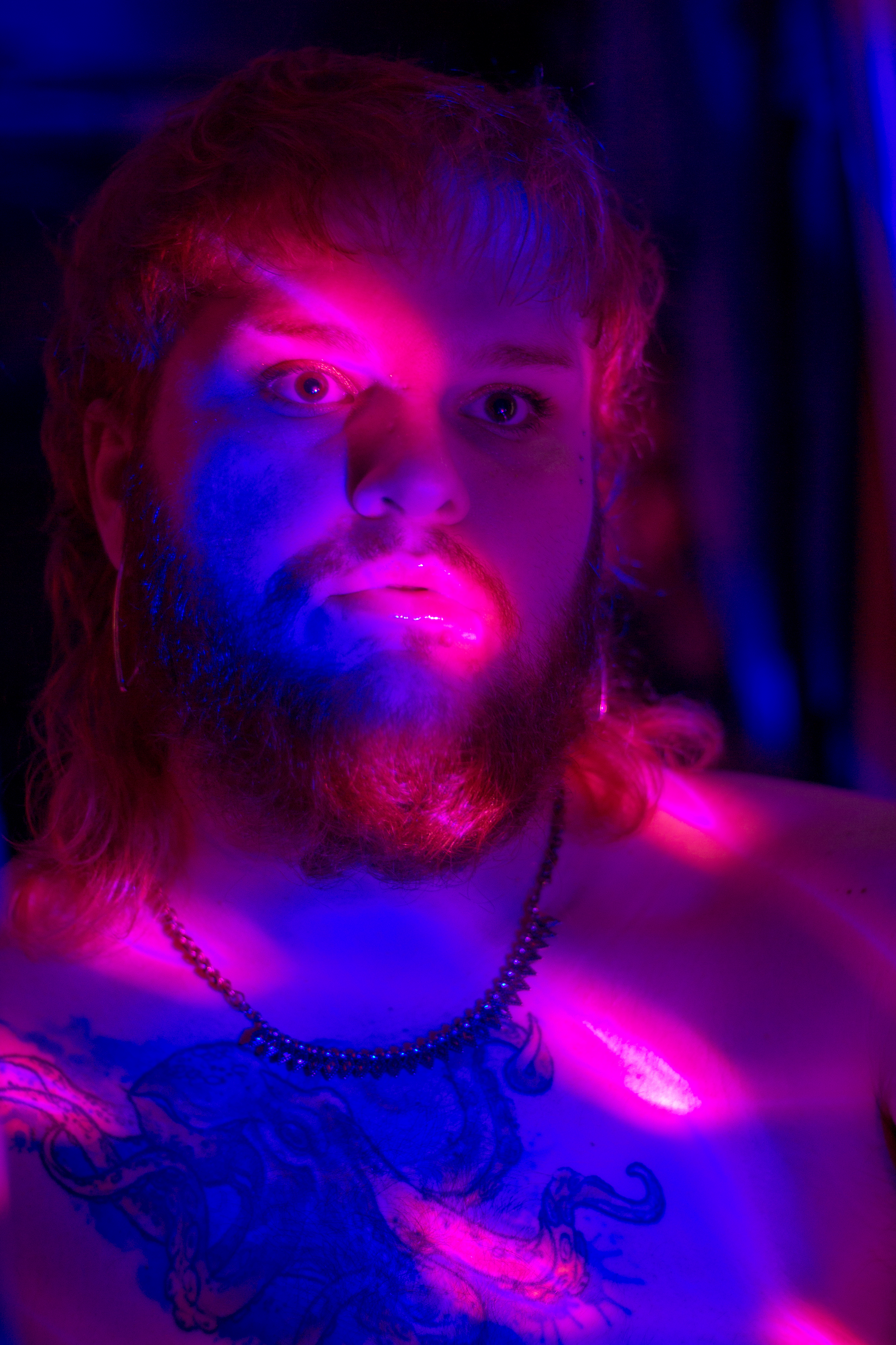 Shot with a Canon Rebel T5, 50mm lens, ISO 400, shutter speeds 1/10-1/15, shooting into a mirror with a small LED disco ball as my only light source in an otherwise unlit room at night.
